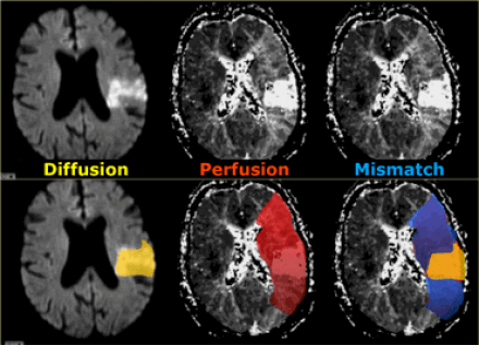 Зона с дефектом перфузии является безвозвратно ишемизированной тканью или зоной пенумбры (ткань риска). При комбинировании диффузно-взвешенного изображения и перфузии есть возможность отдифференцировать зоны пенумбры и зоны безвозвратной ишемии.