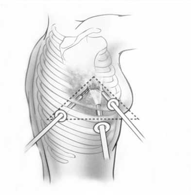 Операция может быть выполнена открытым способом (через разрез) или эндоскопически (видеоассистированная торакоскопическая хирургия, или, сокращенно — VATS). [2,6]