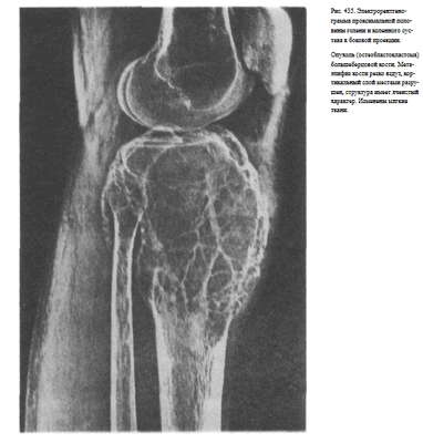 Опухоли костной, суставной и мягких тканей визуализируются как формирования без четкого контура, выходящие за пределы нормальной структуры. Характерны деструктивные изменения, окружающие новообразование.