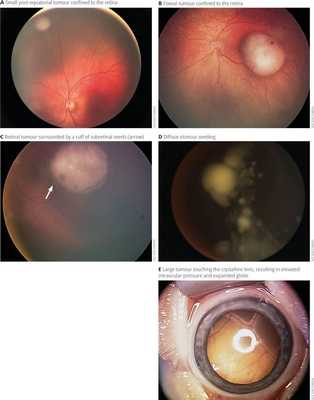 Ретинобластома может иметь эндофитный тип роста в направлении центра глазного яблока: при этом происходит разрушение слоев сетчатки и стекловидного тела. При другом варианте роста - экзофитном, ретинобластома инфильтрирует сетчатку, распространяясь в субретинальное пространство. Экзофитные опухоли могут вызывать отслойку сетчатки и скопление транссудата в субретинальном пространстве. В редких случаях (1-2%) встречается инфильтративная форма ретинобластомы, которая ведет к диффузному истончению сетчатки, накоплению экссудата в передних отделах глаза, развитию передних спаек и псевдогипопиона.