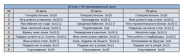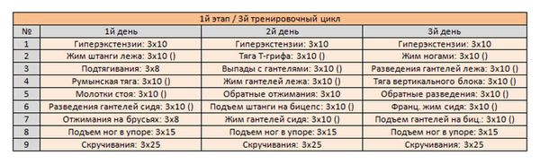 Программа тренировок: 1й цикл