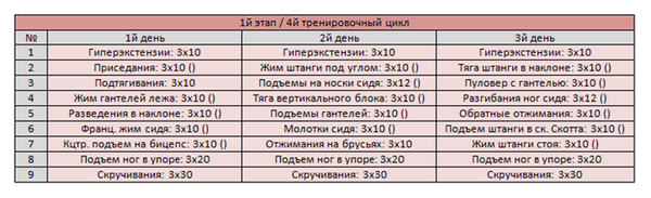 Программа тренировок: 4й цикл