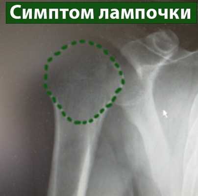 Рентген. На стандартной рентгенографии при вывихе проксимальный отдел плеча имеет вид электрической лампочки, а суставная впадина лопатки свободна.