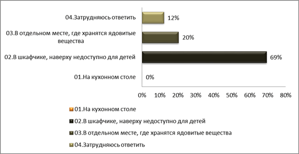 3. При опросе респондентов о месте хранения уксусной кислоты, получены следующие результаты:
