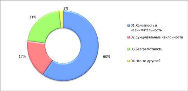 Вывод: Из этого следует, что респонденты считают основной причиной отравлений уксусной кислотой является халатность и невнимательность.