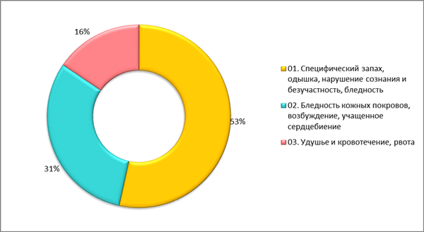 Вывод: данные диаграммы показывают, что респонденты знают, что нужно срочно вызывать врача и ждать, при употреблении большой дозировки 80% уксусной кислоты.