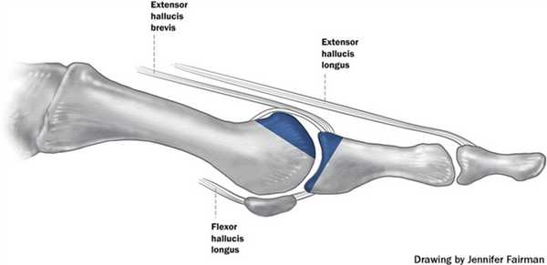 Переразгибание большого пальца приводит к разрыву подошвенной капсулы плюсне-фалангового сустава.