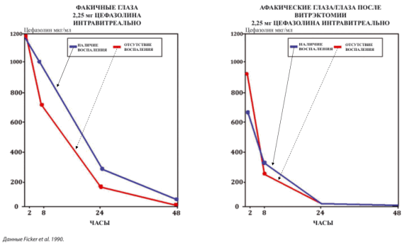 Рис. 3. Скорость выведения цефазолина из стекловидного тела [1]