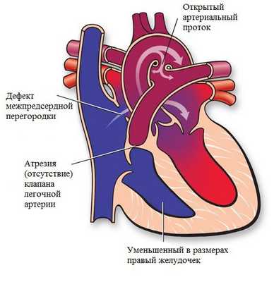 Тяжелейшие расстройства гемодинамики приводят к выраженной легочной гипертензии вследствие высокого давления в системе сосудов малого круга; артериальной гипотонии, обусловленной неадекватным наполнением большого круга; артериальной гипоксемии, связанной со смешением крови в правом желудочке.