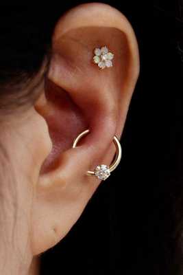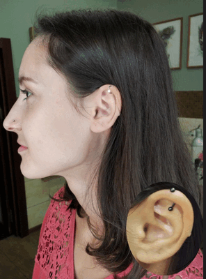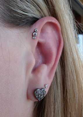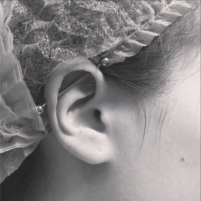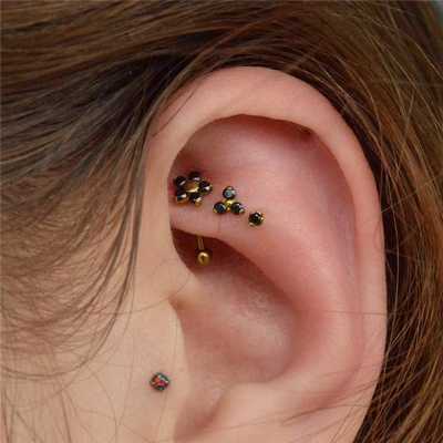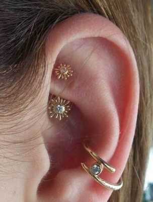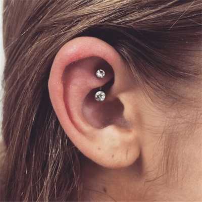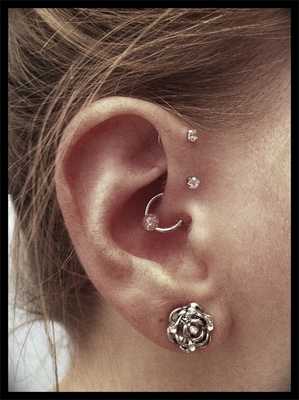 Разновидность прокола хряща - выполняется на противозавитке. Если ушная раковина позволяет, можно сделать несколько отверстий и установить разные украшения. На заживление уходит около 4 месяцев.