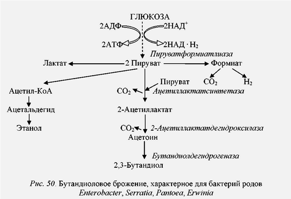 Рис. 6 - Бутандиоловое брожение, характерное для бактерий родов Enterobacter, Serratia, Pantoea, Erwinia