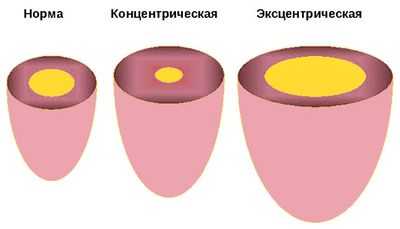 В зависимости от характера утолщения сердечной мышцы выделяют ГЛЖ концентрического и эксцентрического типов.