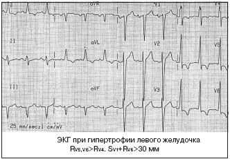 Помимо увеличения зубца R в левых грудных отведениях, наблюдается увеличение зубца S в отведениях V1- V3, амплитуда которого может превышать 25 мм. Однако увеличение зубца R в левых и зубца S в правых грудных отведениях далеко не всегда сочетается.