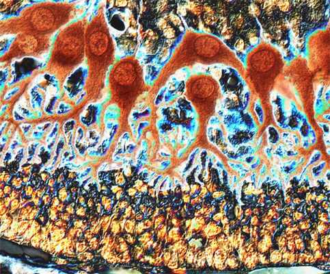 Клетки Пуркинье (красный). Фото Yinghua Ma and Timothy Vartanian, Cornell University, Ithaca, N.Y. Part of the exhibit Life:Magnified by ASCB and NIGM