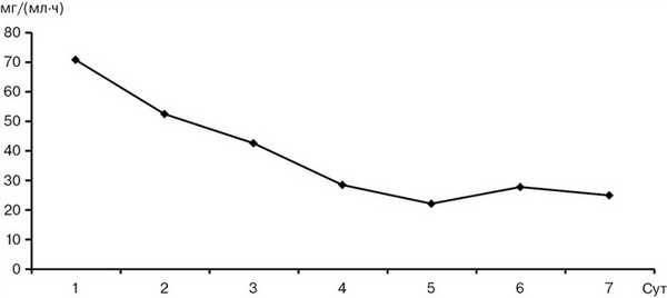 Рис. 3. Концентрация α-амилазы мочи после травмы.