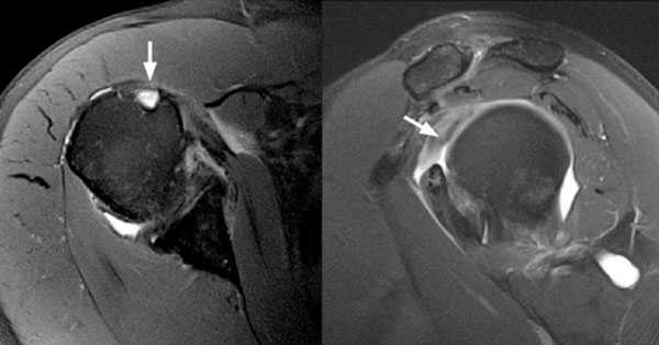 Разрыв может быть изолированным, либо сопровождаться нарушением других структур, например, вращательной манжеты. При сопутствующих нарушениях клиническая картина бывает нетипичной.