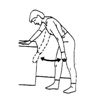 - Качательные движения в плечевом суставе: наклониться вперед и свесить расслабленную руку. Раскачивать руку в различных плоскостях, избегая положений, доставляющих дискомфорт.