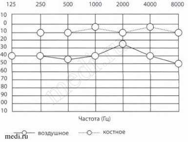 Рис. 9. Аудиограмма пациента со смешанной тугоухостью