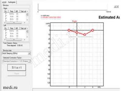 У детей до 5 лет включительно компьютерная аудиометрия проводятся во время физиологического сна, а старше - в спокойном состоянии лежа на спине с закрытыми глазами.