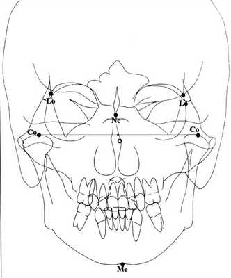 — врожденного отсутствия или недоразвития одной из суставных головок, отсутствия мыщелкового отростка и ветви челюсти и вследствие этого — недоразвития всей половины НЧ на стороне поражения [1]; тогда точка Ме смещается в сторону повреждения;