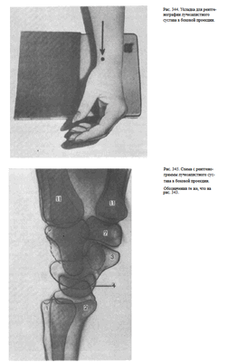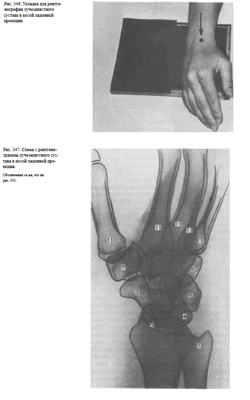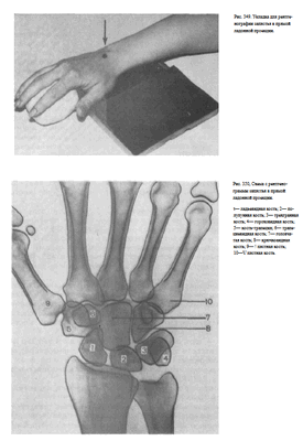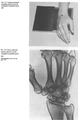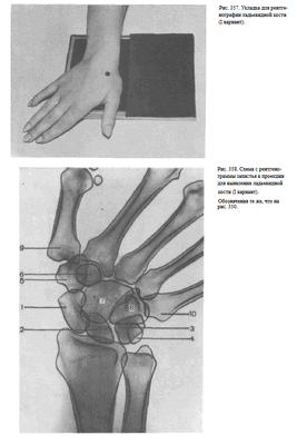 Пальцы выпрямлены или согнуты. Пучок рентгеновского излучения направлен на проекцию ладьевидной кости (рис. 357, 358);