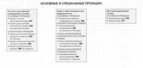 Следующий указатель — это предлагаемая последовательность возможных основных и специальных проекцийтаза и проксимального отдела бедренной кости, описанных в данном учебнике. Основная задняя проекция тазарассматривается как пер-