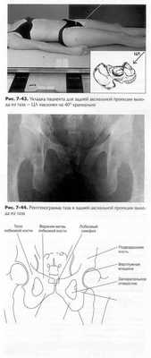вичная оценочная проекция какдля тазобедренного сустава, так и для общей оценки патологических процессов таза или его травмы. После этой проекции выполняют дополнительные боковые проекции тазобедренного сустава и проксимального отдела бедренной костиили специальные проекции тазапри возможной травме других частей таза.