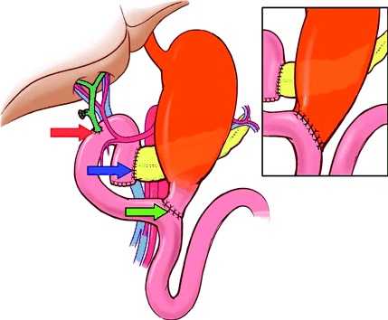 Реконструкция пищеварительного тракта после панкреатодуоденальной резекции.