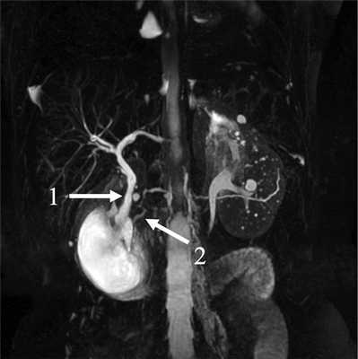 Рис. 2. МРХП-грамма. Дупликационная киста двенадцатиперстной кишки.