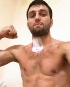 Это Сослан Рамонов, олимпийский чемпион по вольной борьбе 2016 года, чемпион мира и т.д. Спортсмену была проведена операция на шейном отделе и он продолжает спортивную карьеру.