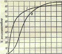 Насыщение гемоглобина кислородом колеблется от 96 до 98%. Степень насыщения гемоглобина кислородом и диссоциация оксигемоглобина (образование восстановленного гемоглобина) не находятся в прямой пропорциональной зависимости от напряжения кислорода. Эти два процесса не являются линейными, а совершаются по кривой, которая получила название кривой связывания или диссоциации оксигемоглобина.