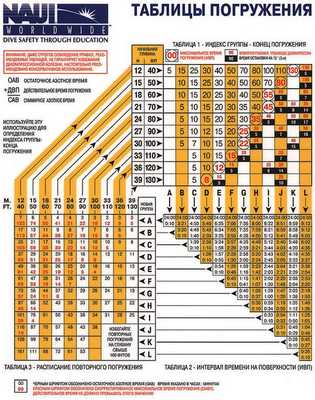 Существует множество таблиц. Наиболее распространены DCIEM, PADI, NDL и некоторые другие.