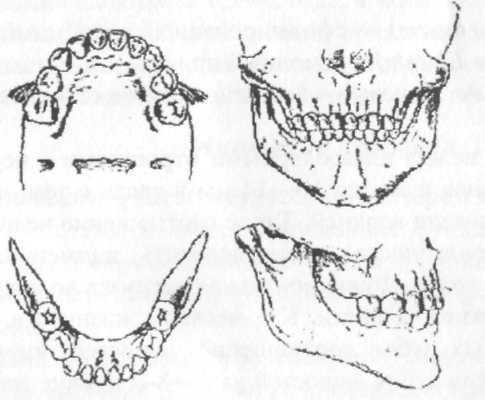 Каждый зуб, как правило, смыкается с двумя антагонистами — глав-ным и побочным. Исключение представляют третьи моляры верхней челюсти и нижние центральные резцы, имеющие по одному антагонисту. Каждый верхний зуб смыкается с одноименным нижним и позади стоящим, каждый нижний — с одноименным и впереди стоящим. Эта особенность взаимоотношения нижних и верхних зубов объясняется тем, что верхние центральные резцы шире нижних одноименных. По этой причине верхние зубы смещены дистально в отношении зубов нижнего ряда. Верхний третий моляр уже нижнего, поэтому дисталыюе смещение верхнего зубного ряда выравнивается в области третьих моляров и их задние поверхности лежат в одной плоскости.