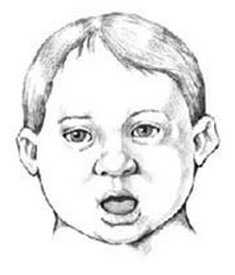 Пример так называемого «аденоидного лица»: губы несомкнутые, с уголков рта стекает слюна, отмечается вялый, инфантильный тип глотания.