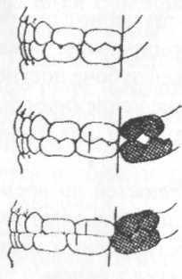 Рис. 48. Схема установки первых постоянных моляров в нейтральную окклю-