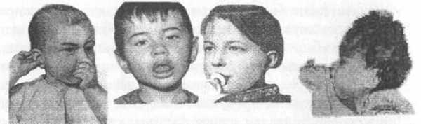 Появление привычки сосания не зависит от чувства голода, так как наблюдается у детей при естественном достаточном кормлении. Чувство удовлетворения и удовольствия от приема пищи ребенок переносит на сосание пальцев и предметов, не являющихся источником насыщения (рис. 46).