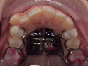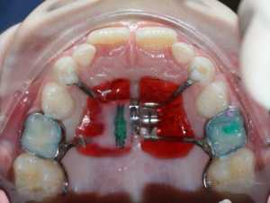 основан на активации винта и последующем расширением челюсти. За счет пластмассового базиса нагрузка передается не только на зубы, но и на костные структуры неба, что позволяет