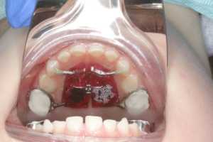 Далее конструкция фиксируется в полости рта и врач проводит обучение родителей активации винта и даёт рекоммендации.