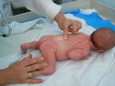 Провести пальцами вдоль позвоночника младенца (по его остистым отросткам), двигаясь вверх от копчиковой кости к шейному отделу - малыш начнет кричать (вызов рефлекса воспринимается крохой отрицательно), приподнимет голову, разогнется и будет сгибать ножки и ручки.