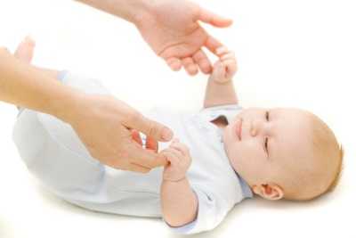 Надавить чем-то малышу на ладошки - ребенок обхватит ладошками предмет или ваши пальцы.