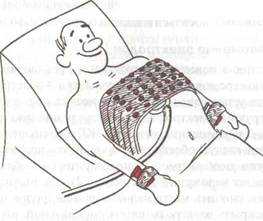 Для диагностики очаговых изменений миокарда задней, переднебоковой и верхних отделов передней стенки применяют двухполюсные отведения по Небу. Для записи этих отведений применяют электроды для регистрации трёх стандартных отведений от конечностей. Электрод с красной маркировкой, обычно устанавливаемый на правой руке, помещают во второе межреберье по правому краю грудины; электрод с левой ноги (зелёная маркировка) переставляют в позицию грудного отведения V 4 , (у верхушки сердца); электрод с жёлтой маркировкой, устанавливаемый на левую руку, помещают на том же горизонтальном уровне, что и зелёный электрод, но по задней подмышечной линии (рис. 7). Если переключатель отведений электрокардиографа находится в положении I стандартного отведения, регистрируют отведение. Перемещая переключатель на II и III стандартные отведения, записывают соответственно отведения (Inferior, I) и (Anterior, А). Для диагностики гипертрофии правых отделов сердца и очаговых изменений ПЖ применяют отведения V 38 - V 68 . Их активные электроды помещают на правой половине грудной клетки (рис. 8).