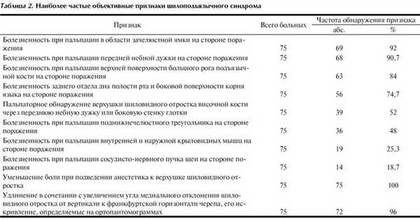 2. Шилоподъязычный синдром проявляется достаточно устойчивым сочетанием субъективных и объективных симптомов, что является основой для его диагностики.