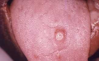 Папулы - это высыпания округлой формы, но без четких очертаний. Они могут проявиться на языке, небе, горле и миндалинах. Язвочки могут образовываться в одном месте и тем самым формировать крупные очаги. Если папула появилась на языке, на этом участке атрофируются чувствительные сосочки, появляется налет, под поверхностью которого скрываются воспаленные ткани красного цвета.