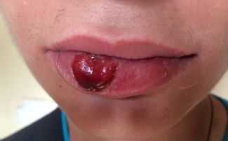 Узел постепенно увеличивается в размере, становится болезненным и приобретает бурый оттенок. Ткань в середине гуммы отмирает - образовывается открытая язва. Уплотненные ткани вокруг язвы возвышаются над уровнем слизистой оболочки пораженного участка полости рта.