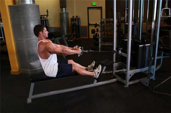 Тяга блока к поясу из положения сидя. Ориентировано на тренировку мышц спины. Способствует существенной выработке тестостерона и гормона роста в организме атлета. Работать можно как с узким, так и с широким хватом.