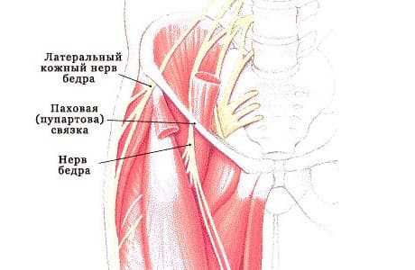 - сдавление латерального кожного нерва бедра при асците (скоплении жидкости в брюшной полости).