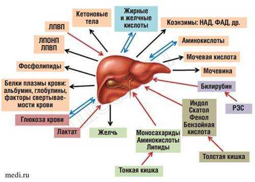 Рис. 1. Роль печени в обмене веществ.