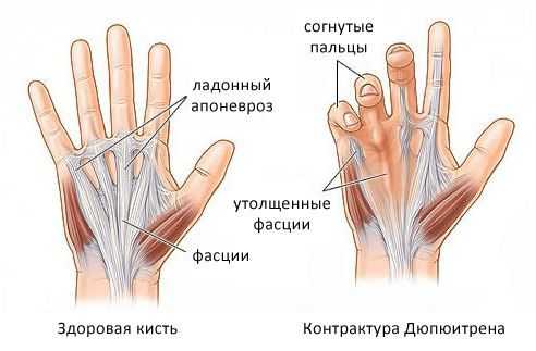 В конце концов, в более поздних стадиях заболевания, образуются плотные тяжи измененного ладонного апоневроза, что приводит к нарушению функции кисти.