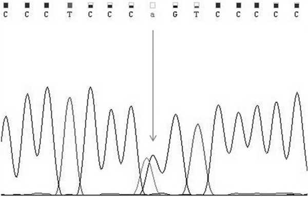 Заключение генетика: СЭД. Был выполнен поиск мутаций в гене COL3A1 методом прямого секвенирования по Сенгеру, кодирующих участков и прилегающих интронных областей (рис. 4). Рис. 4. ДНК-диагностика сосудистого типа синдрома СЭД у пациента П. Фрагмент прямого секвенирования 45-го экзона гена COL3A1. Стрелкой указана мутация c. 3301G>A (p.Gly1101Arg) в гетерозиготном состоянии.