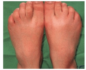 При осмотре стопы отмечается увеличение объема второго плюсне-фалангового сустава вследствие синовита.